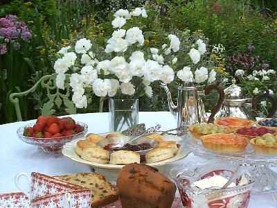 Well, I would pick up devon cream and tea and Sherry at your convenience, to store and have on hand for that rainy day. And on the day of, I would run out to a specialty store and pick up the bread (sliced) a couple of sandwich fillers in the deli area, scones and petit four in the bakery section, and go home and set it up! If you can’t find petits fours, you can purchase an individual lemon tart and raspberry tart and cut them in squares with a sharp knife!